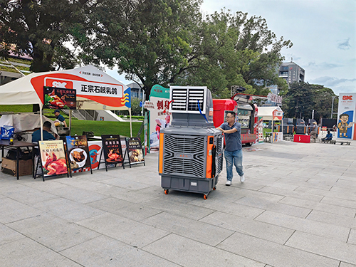 2.靈活實(shí)用是它的另一大優(yōu)勢(shì)。底部萬向輪設(shè)計(jì),讓冷風(fēng)機(jī)可輕松移動(dòng)于露營(yíng)地、展會(huì)攤位、游樂園排隊(duì)區(qū)等多種場(chǎng)景,即插即用,無需復(fù)雜安裝,徹底擺脫傳統(tǒng)空調(diào)對(duì)固定場(chǎng)地的依賴。在某城市露營(yíng)嘉年華中,數(shù)十臺(tái)瑞泰風(fēng)設(shè)備駐守關(guān)鍵區(qū)域,讓排隊(duì)人群告別悶熱,舞臺(tái)前的觀眾也能專注欣賞表演,活動(dòng)整體好評(píng)率提升40%。
