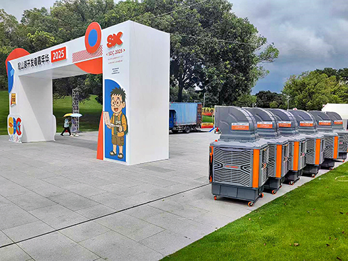 4.安全性能同樣出色。整機(jī)采用8.8級(jí)高強(qiáng)度螺栓配合樂泰螺紋鎖固劑防松處理,底部防滑設(shè)計(jì)有效防止意外移動(dòng),即便在復(fù)雜戶外環(huán)境中也能保持穩(wěn)定運(yùn)行。從親子跑休息區(qū)到大型展會(huì)開放場(chǎng)館,瑞泰風(fēng)始終可靠地輸送清涼。